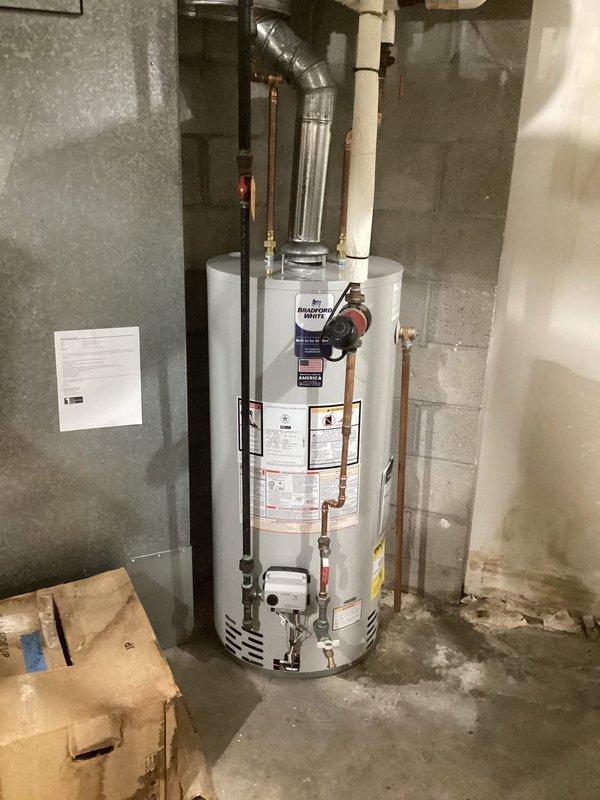 Replaced residential water heater in mechanical room per quoted specifications. Removed existing unit, installed new water heater with proper venting and plumbing connections including copper piping and shut-off valves, and verified all connections were secure and operational.